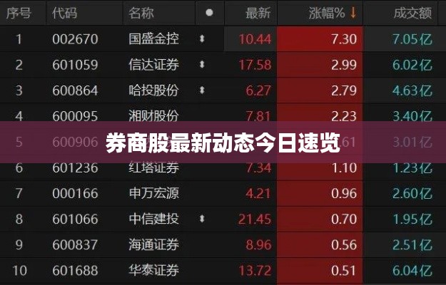 随着金融市场的日益繁荣,券商股作为资本市场的重要组成部分,其动态一直备受关注,本文将围绕“券商股最新消息今日”这一主题,对券商股的最新消息、市场动态、行业趋势及可能影响投资者决策的因素进行概述。
