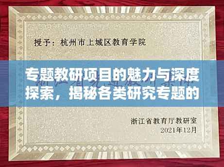 随着教育改革的不断深入,专题教研已成为提升教育质量、推动教师专业发展的重要手段,专题教研项目是教师们围绕特定主题,开展深入研究与实践的载体,专题教研的项目有哪些呢?本文将从不同角度对专题教研的项目进行阐述。