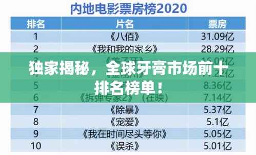 口腔健康是全身健康的重要组成部分,因此选择一款好的牙膏对于保护牙齿和口腔健康至关重要,本文将为您介绍牙膏排名前十名的排名榜,以帮助您选择最适合自己的牙膏。