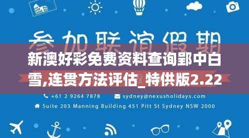 澳门特别行政区政府制定政策时,始终以澳门整体的长远利益为出发点和落脚点,通过多种途径向新澳民众提供各类免费咨询,资料查询服务,以提高政府工作的透明度和民众的参与度。近日发布的《新澳好彩免费资料查询郢中白雪,连贯方法评估_特供版2.225》(以下简称《资料查询评估2.225》),就是最新的政策文件之一,本文将对该文件进行详细解读和分析。