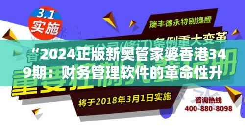 在当前的商业环境下,企业面临的竞争和财务压力空前巨大。澳门地区因其特殊的经济结构和政策环境,对于财务管理软件的需求有着独特的要求。“2024正版新奥管家婆香港349期”作为财务管理软件的革命性升级,旨在通过最新的技术为澳门地区的企业提供更高效的财务数据处理能力、更精准的业务决策支持和更安全的数据存储方案。